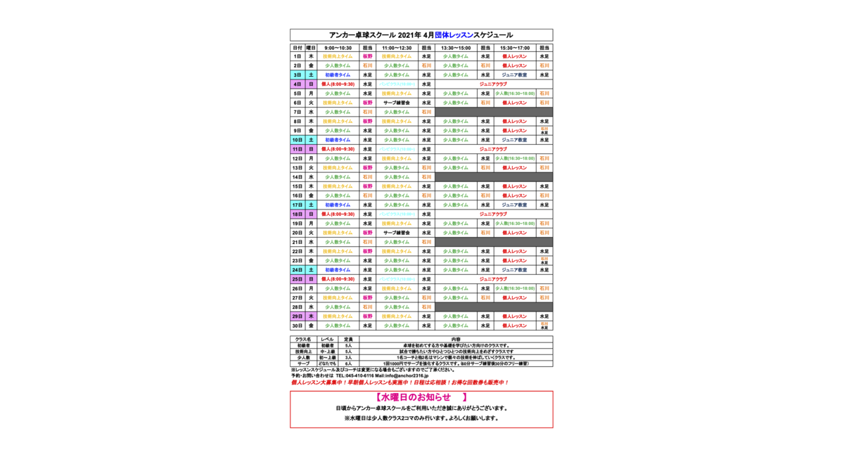 毎週水曜日の少人数クラス2コマ開催など、少し変更点がございますのでご覧いただければと思います。