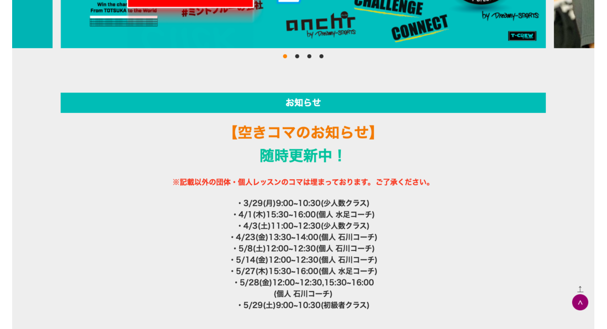 アンカー卓球スクールHPのお知らせ欄に