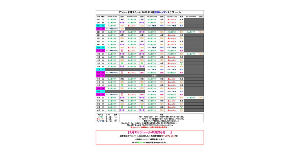 いつもアンカー卓球スクールをご利用ありがとうございます。
