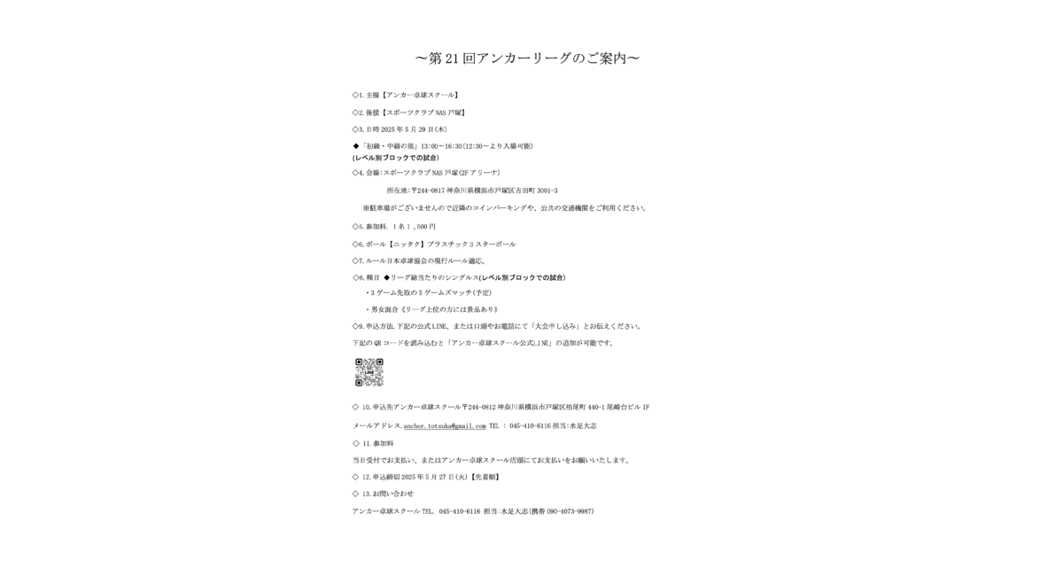 ※「アンカー卓球スクール店頭」でも参加受付可能です!