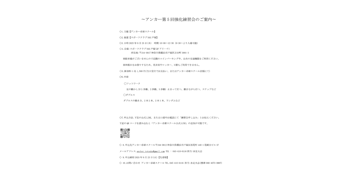 ※「アンカー卓球スクール店頭」でも参加受付可能です!