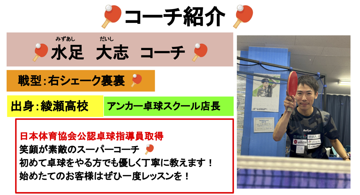 水足コーチの個人レッスンを追加いたしました!🏓