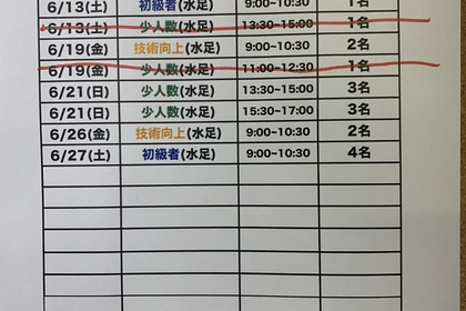 個人レッスンの空き状況の表をコルクボードに掲示しました! ・ご予約は30分単位から可能です ・リアルタイムでの予約が入ってしまい、上記とは異なる場合がございます   気温が高く暑い日々が続いて...