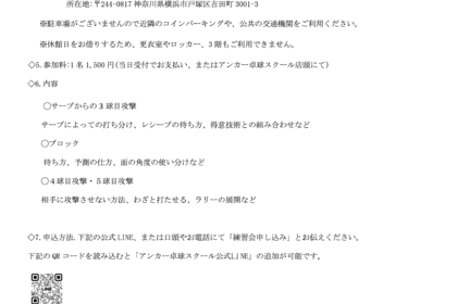 【水足コーチ 10月分全ての空き状況のお知らせ!★アンカー卓球スクール戸塚】