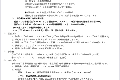 【2025/8/23 戸塚区民卓球大会のお知らせ!】