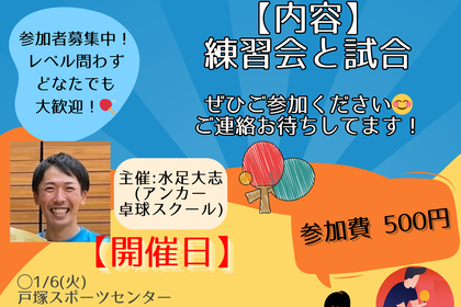 🏓【戸塚区民卓球大会のお知らせ】🏓 ※アンカーからお申し込みできます!✨ こんにちは! 戸塚区民卓球大会のお知らせです! それぞれのチームや個人でお申し込みできるのと、アンカーからご一緒に申し...