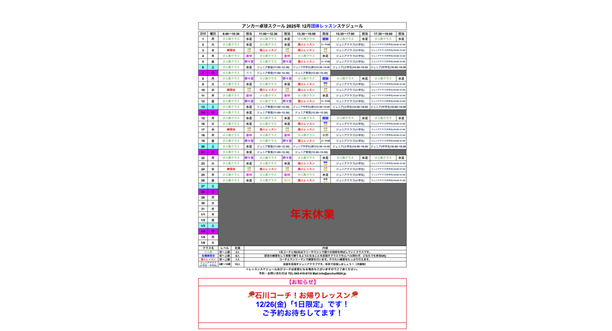 いつもアンカー卓球スクールをご利用いただきましてありがとうございます!😊