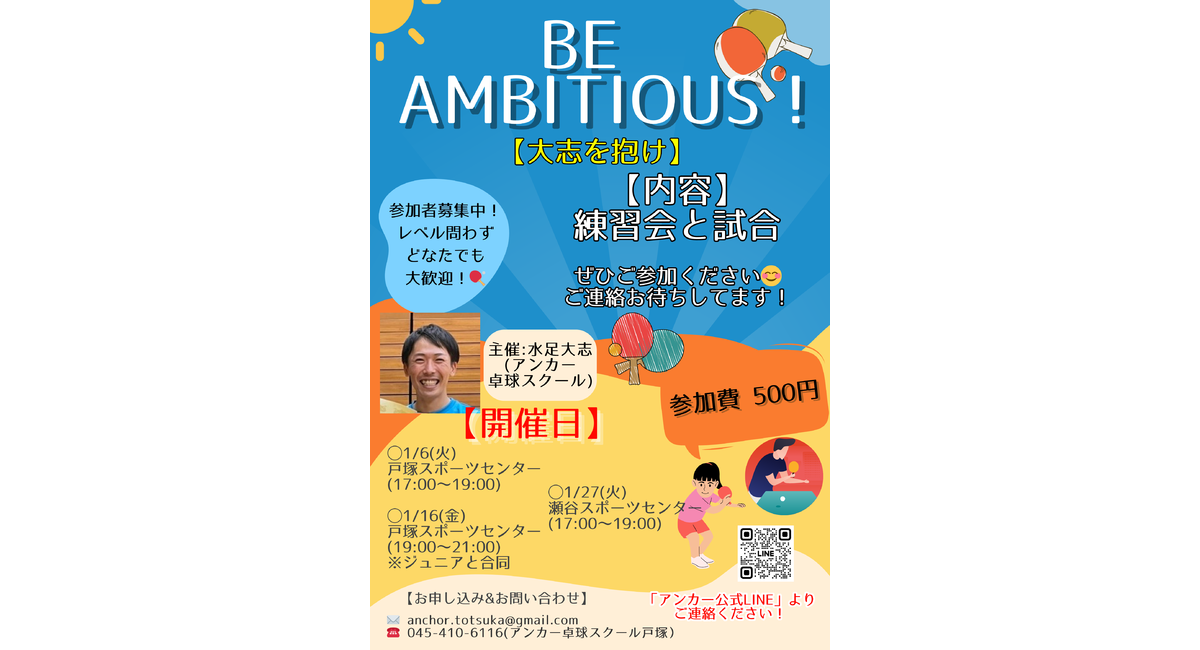 🏓【BeAmbitious(スポセン練習)12月予定のお知らせ!🔥】🏓